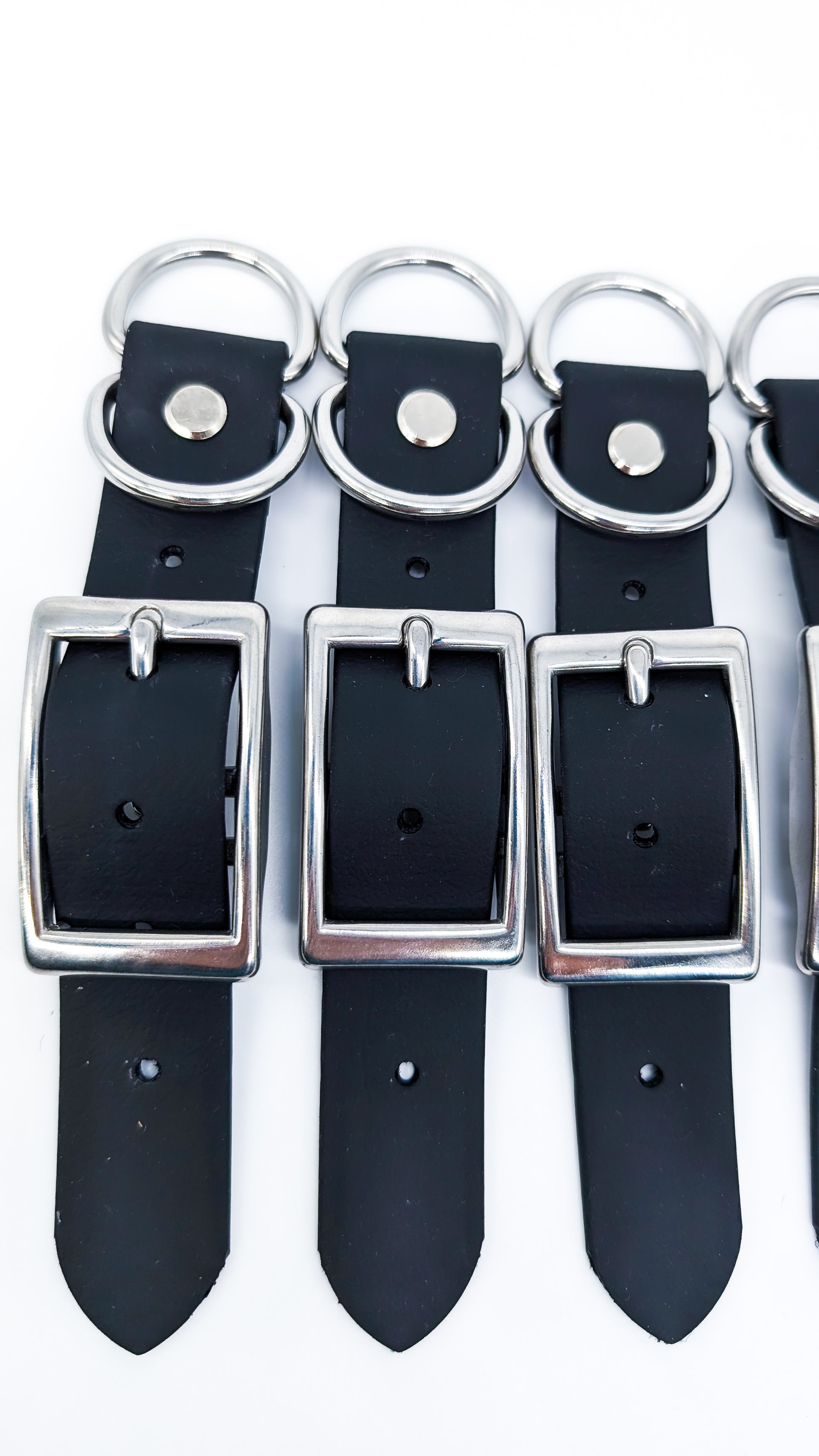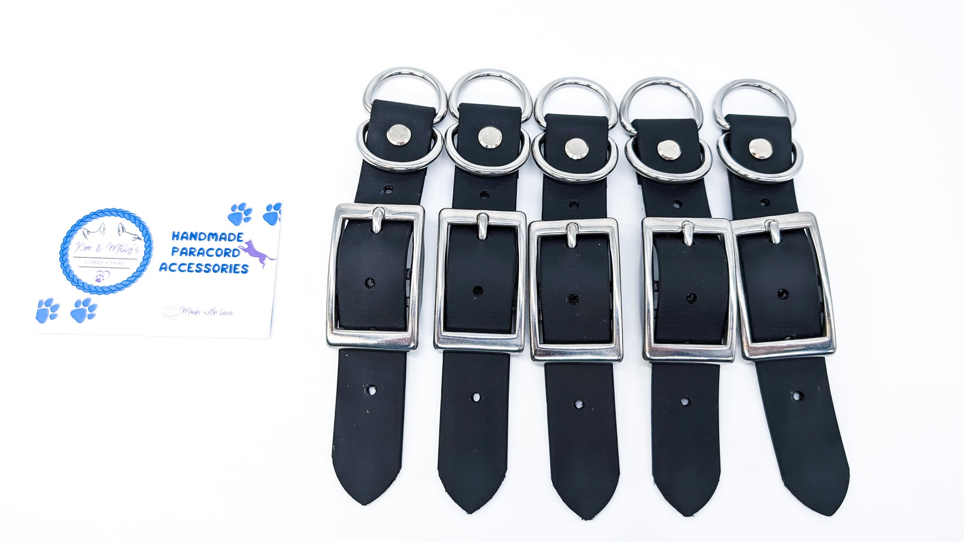 These 25mm black Biothane® adapters are perfect for crafting your own dog collars — durable, easy to clean, and ready to go.