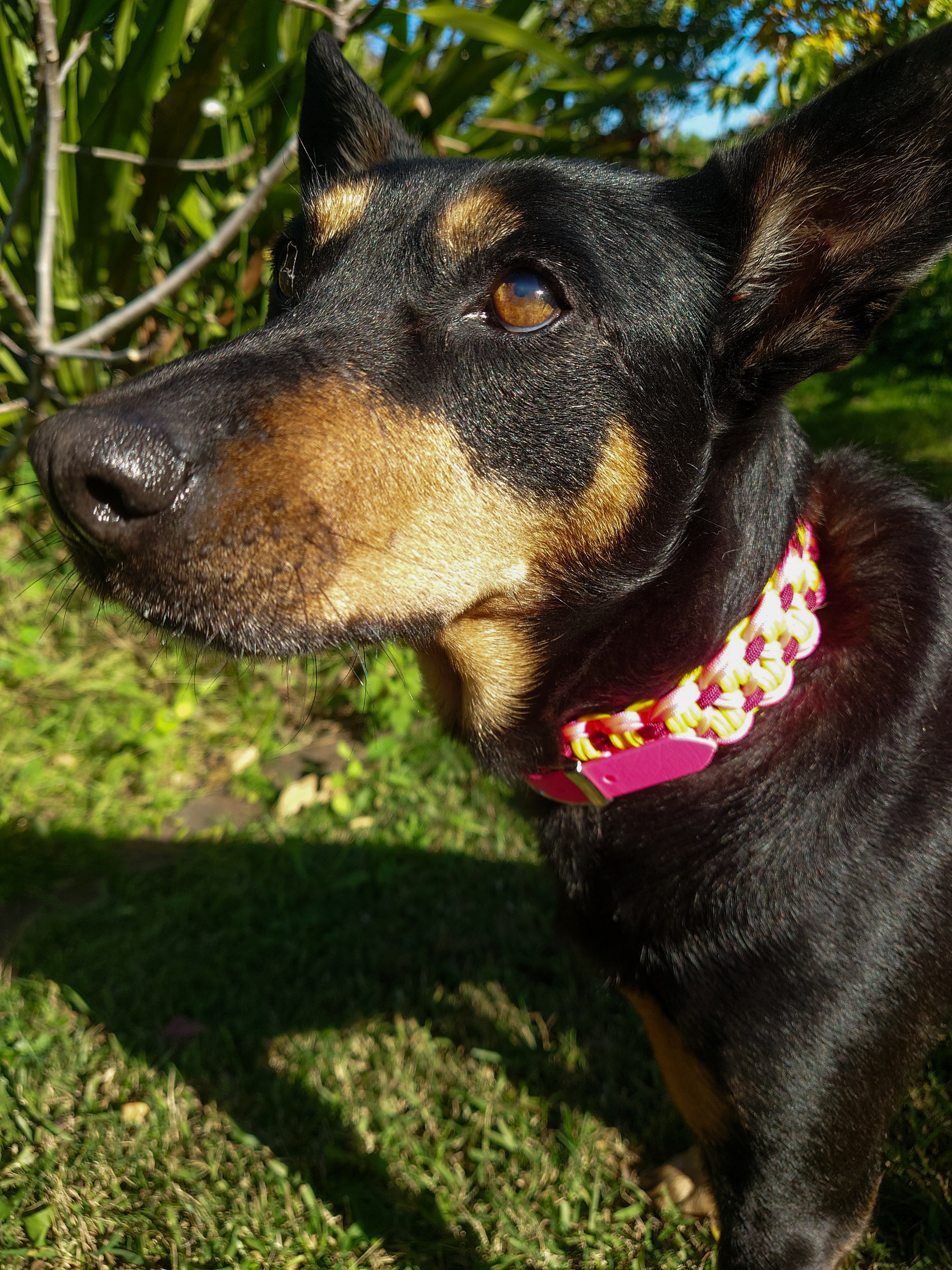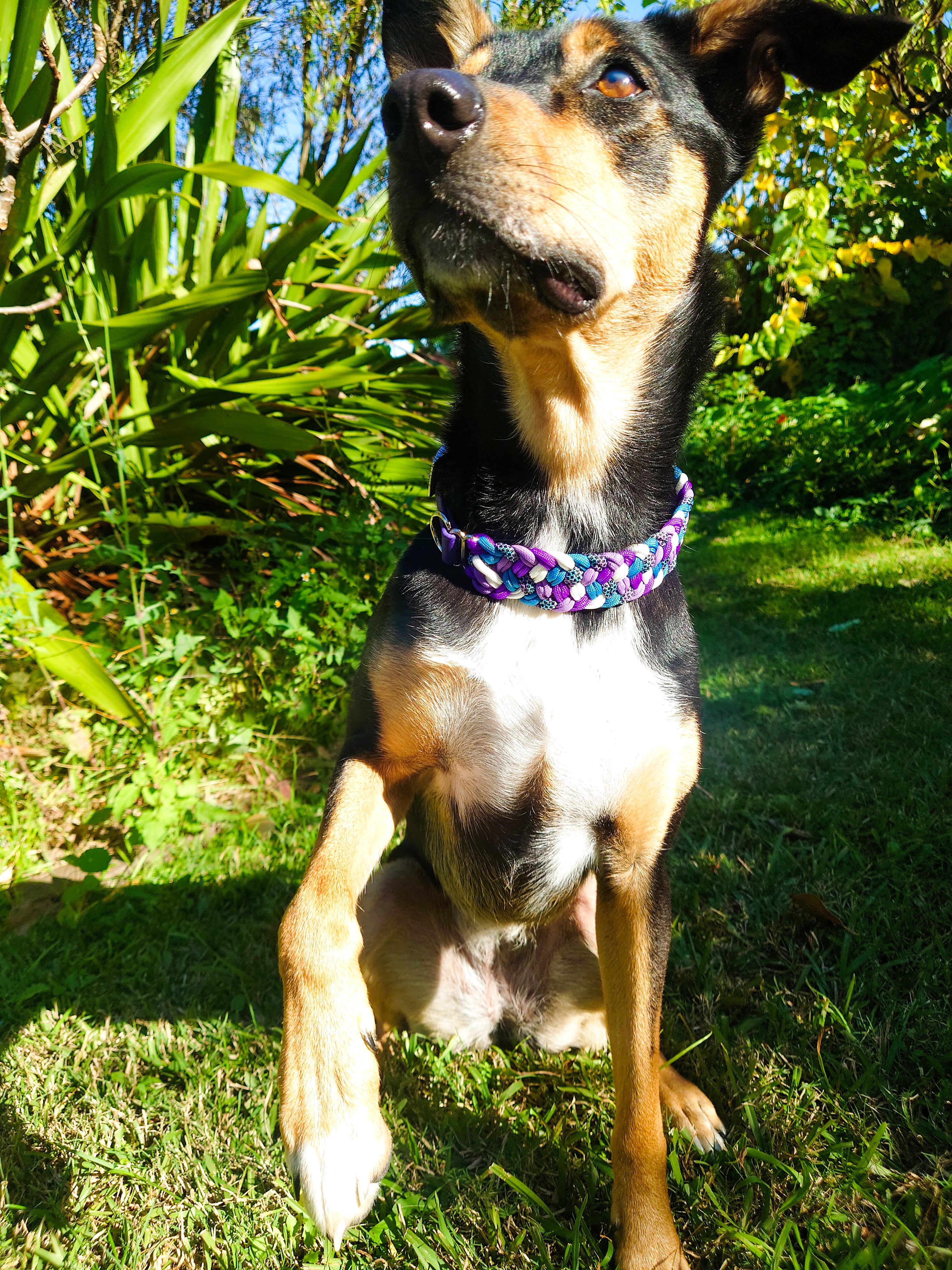 Most paracord products (apart from Key Chains and Collar Flower Charms) can be machine washed in a delicates bad at 30 degrees C and then air dried in the shade. Do not tumble dry your items. BioThane Products can be rinsed and scrubbed with a soft brush. Collars with BioThane Adapters can be machine washed as explained above.